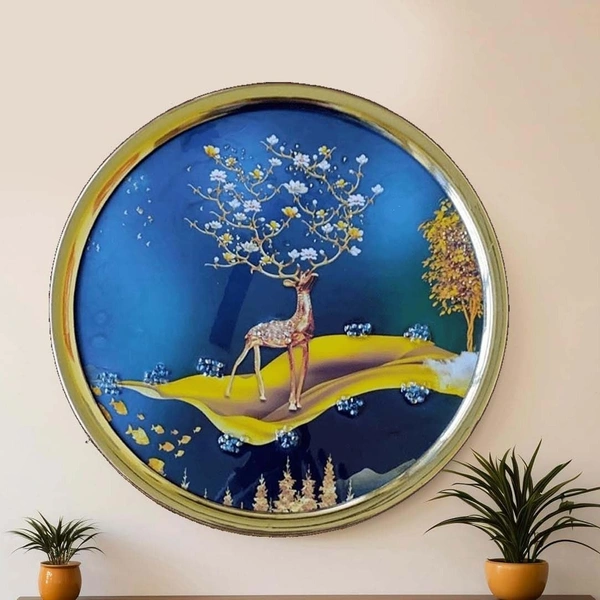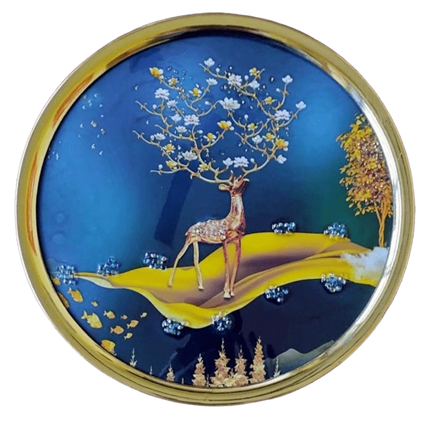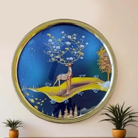29 x 29 cm round shaped crystal wall art painting with golden frame