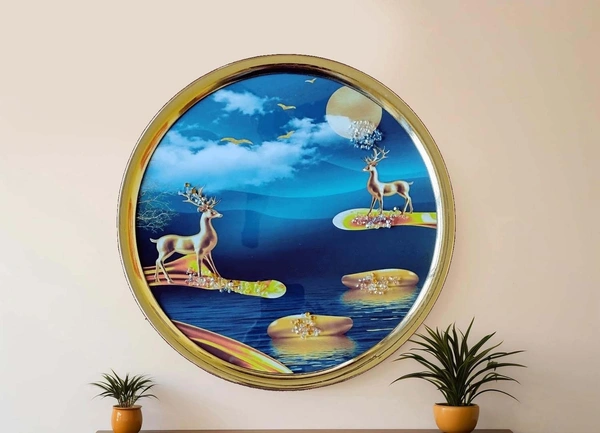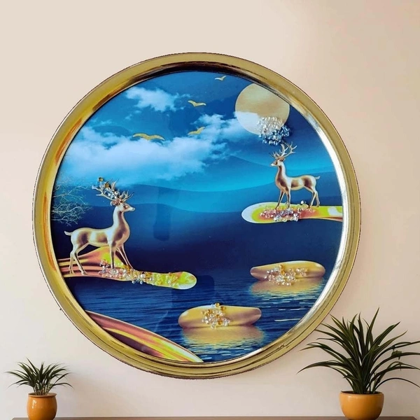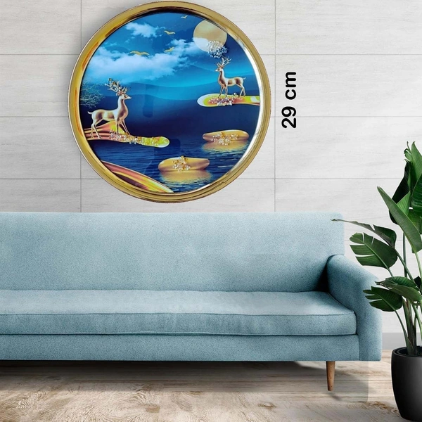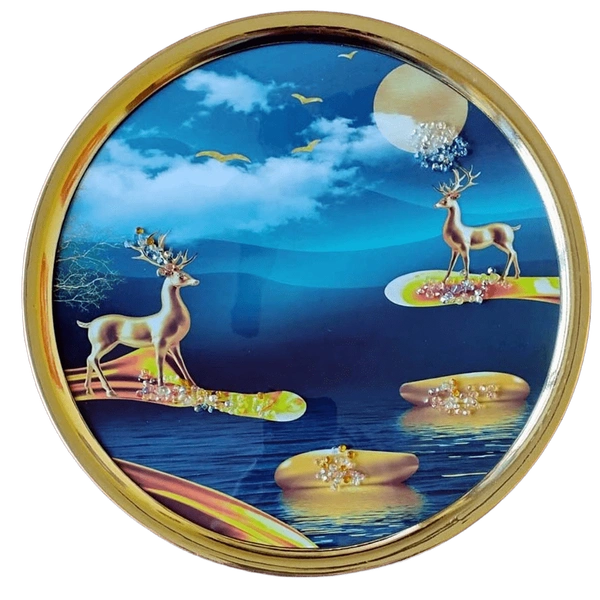 29 x 29 cm round shaped crystal wall art painting with golden frame