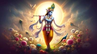 Krishna Playing Flute Sunrise