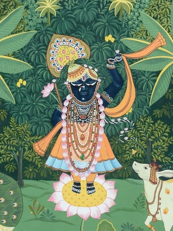Pichwai Shrinathji Peacock Cow